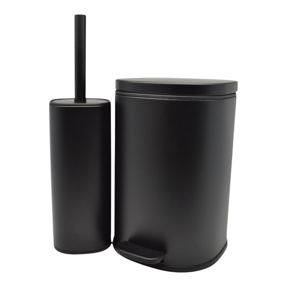 Σετ με κάδο απορριμμάτων και πιγκάλ, από ανοξείδωτο ατσάλι με μαύρο ματ φινίρισμα που δεν αφήνει δαχτυλικά αποτυπώματα. Ο κάδος έχει καπάκι με αυτόματο κλείσιμο κ αφαιρούμενο εσωτερικό κάδο για εύκολο καθάρισμα.Το πιγκάλ διαθέτει μαύρο ανθεκτικό βουρτσάκι