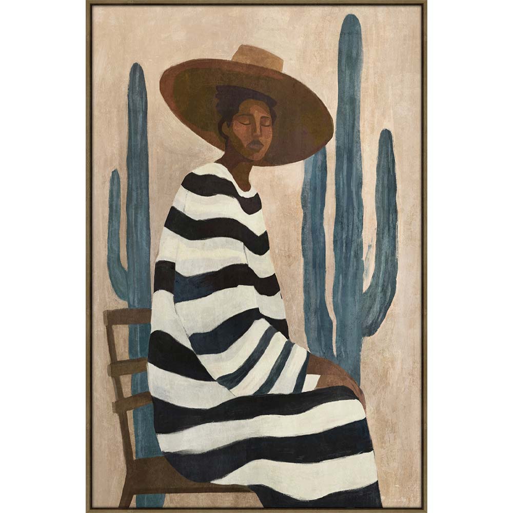 Ο πίνακας DESERT BLOOM εστιάζει στη σύνθεση και στο contrast της ανθρώπινης μορφής με τα φυσικά στοιχεία. Η γεωμετρική απλότητα του σχεδίου βάζει την εικόνα στο επίκεντρο, δημιουργώντας μια αίσθηση καλλιτεχνικού μυστηρίου. Το έργο λειτουργεί ως statement piece τόσο σε οικιακούς χώρους όσο και σε boutique επαγγελματικά περιβάλλοντα, από lobby ξενοδοχείων έως χώρους αναμονής.