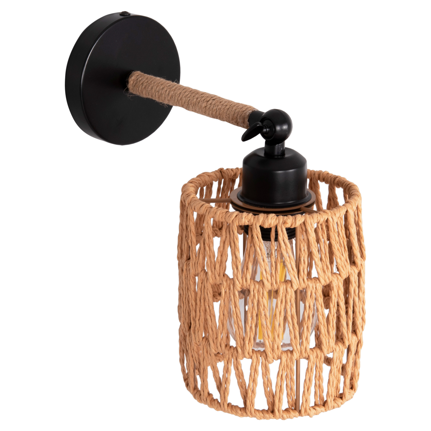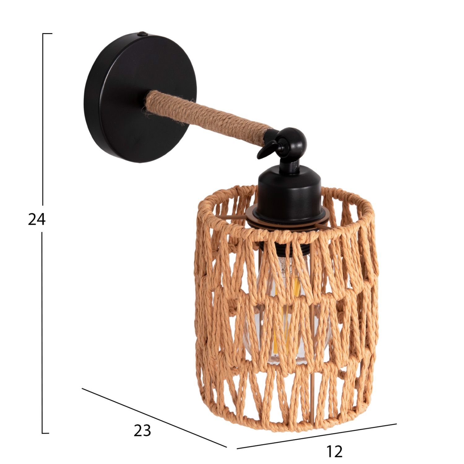 Η απλίκα τοίχου FB94484 είναι μια όμορφη πρόταση αλλά με αναφορές στο κλασικό κρεμαστό σχέδιο. Το καπέλο του φωτιστικού είναι κυλινδρικό με επένδυση σχοινιού κάνναβης που αφήνει το φως να διαχέεται σε κάθε κατεύθυνση δημιουργώντας μια ατμόσφαιρα μοναδική, ενώ ο βραχίονας είναι ρυθμιζόμενος με περιστροφική «πεταλούδα» (βίδα).