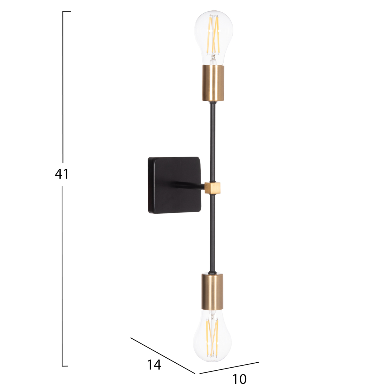 Η μεταλλική απλίκα τοίχου FB94465 είναι μια μοντέρνα και minimal πρόταση για τον φωτισμό που θέλετε. Είναι μεταλλική σε ΜΑΥΡΟ χρώμα με λεπτομέρειες σε ΧΡΥΣΟ χρώμα και διαθέτει έναν απλό βραχίονα με 2 λάμπες στις άκρες του.