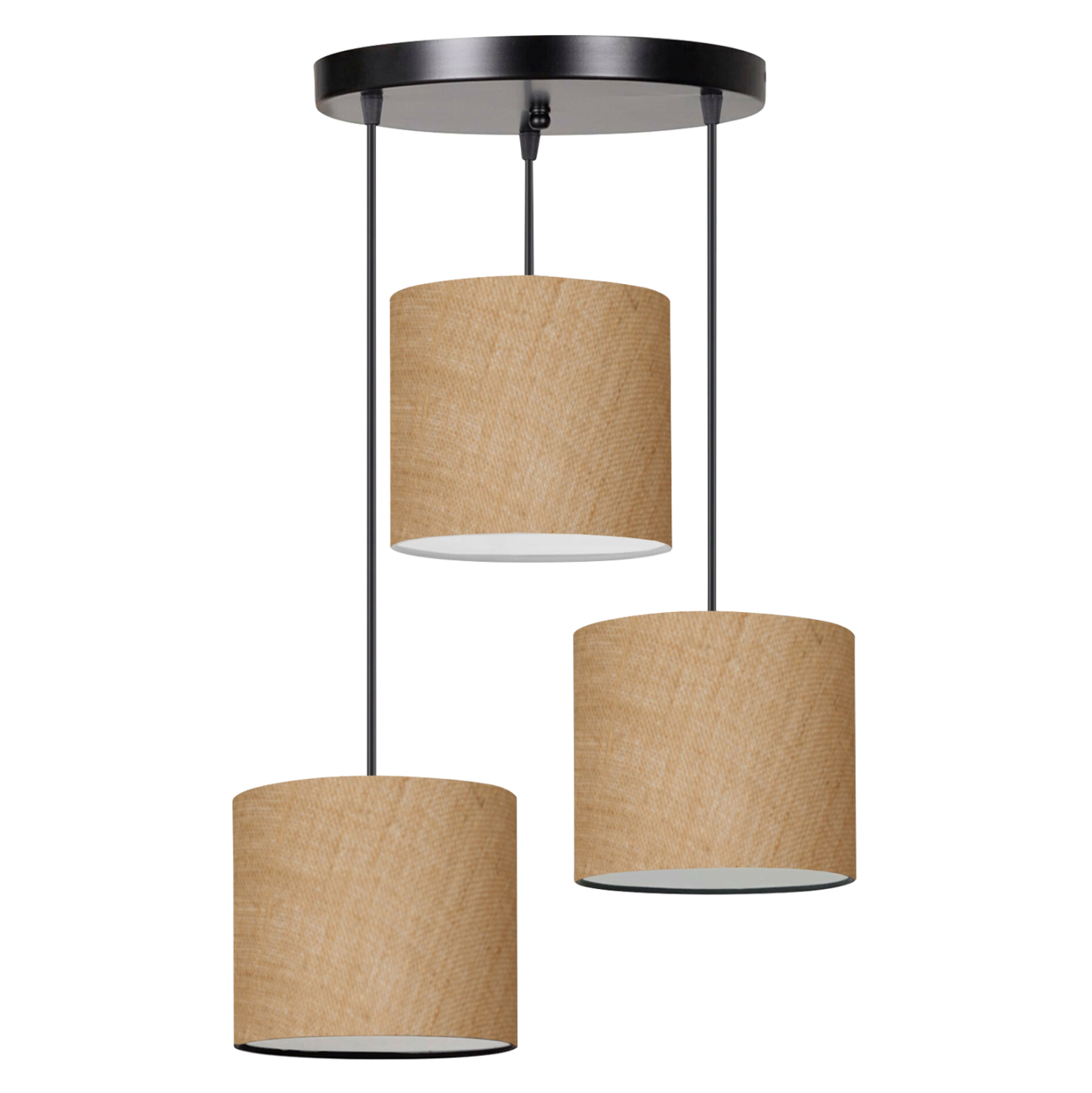 Είτε είναι μέρα, είτε νύχτα, είτε είναι αναμμένο ή σβηστό, αυτό το κρεμαστό πολύφωτο με πλαστικά καπέλα επενδυμένα με γιούτα, σε ασσύμετρη διάταξη, προσφέρει στον χώρο σας στιγμιαία στυλιστική αναβάθμιση. Η υφή του μπορεί να είναι λίγο ασυνήθιστη για κρεμαστό φωτιστικό, αλλά χάρη στην λευκή εσωτερική του επιφάνεια, δίνει στο φως μια απαλή λάμψη. Το μπεζ της άμμου χρώμα του «τύμπανου» πραγματικά δίνει την εντύπωση της πολυτέλειας χωρίς όριο.