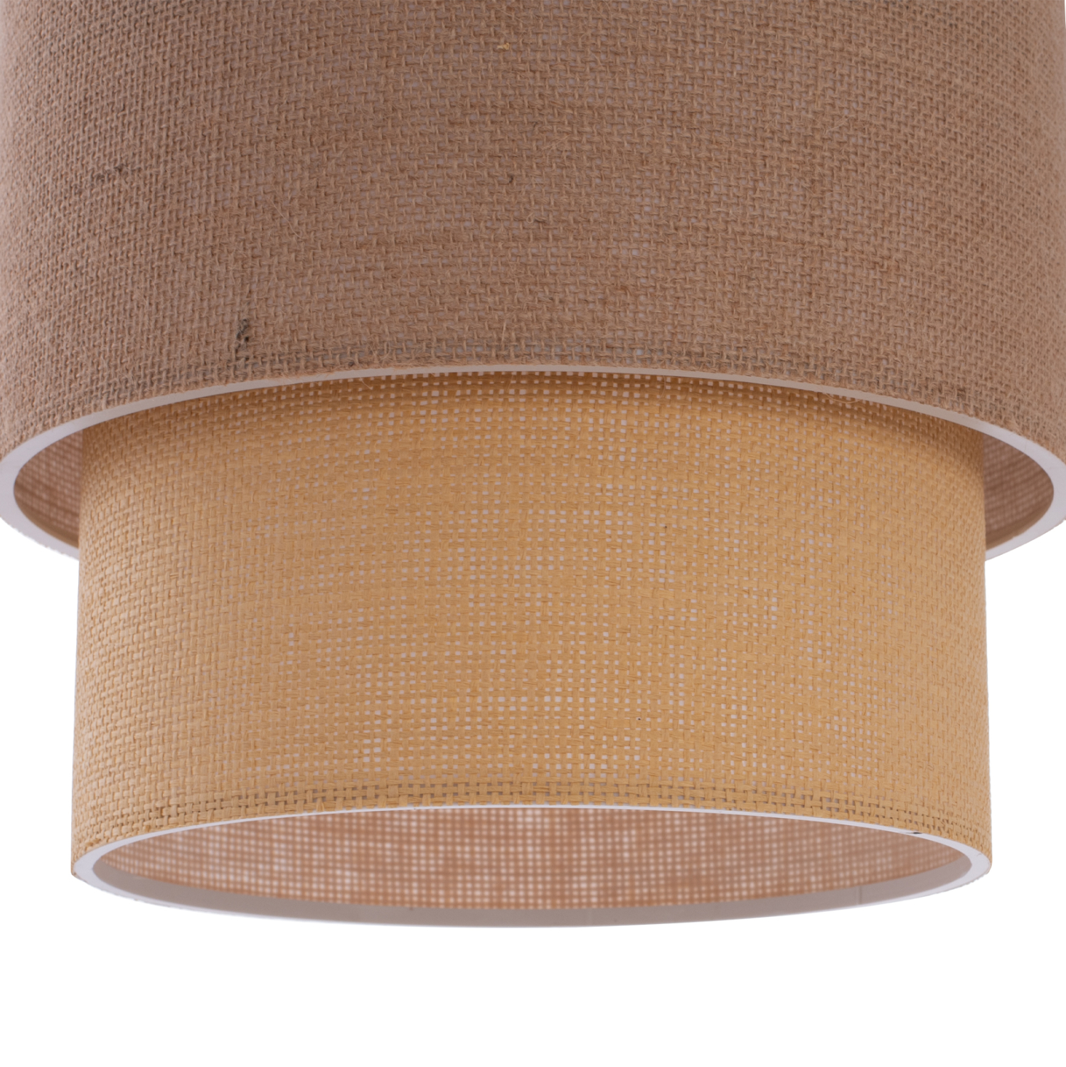 ΥΛΙΚΑ ΚΑΤΑΣΚΕΥΗΣ: Τα τύμπανα αποτελούνται από ύφασμα. Τα εσωτερικά κυλινδρικά τύμπανα είναι σε χρώμα μπεζ ενώ τα εξωτερικά σε μπεζ της άμμου. Ο σκελετός του φωτιστικού είναι από πολυαιθυλένιο.