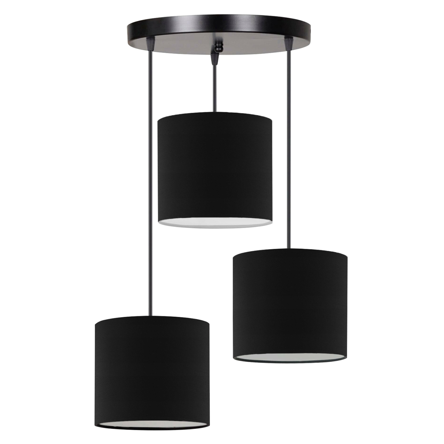 Είτε είναι μέρα, είτε νύχτα, είτε είναι αναμμένο ή σβηστό, αυτό το κρεμαστό πολύφωτο με πλαστικά «τύμπανα» επενδυμένα με ύφασμα, σε ασσύμετρη διάταξη, προσφέρει στον χώρο σας στιγμιαία στυλιστική αναβάθμιση. Εκεί που νομίζατε ότι η αγάπη μας και η δική σας για οτιδήποτε υφασμάτινο δεν μπορούσε να φτάσει σε νέα σύνορα, ήρθαν αυτά τα φωτιστικά οροφής. Η υφή του υφάσματος μπορεί να είναι λίγο ασυνήθιστη για κρεμαστό φωτιστικό, αλλά χάρη στην λευκή εσωτερική του επιφάνεια, δίνει στο φως μια απαλή λάμψη. Το μαύρο χρώμα του «τύμπανου» πραγματικά δίνει την εντύπωση της πολυτέλειας χωρίς όριο.