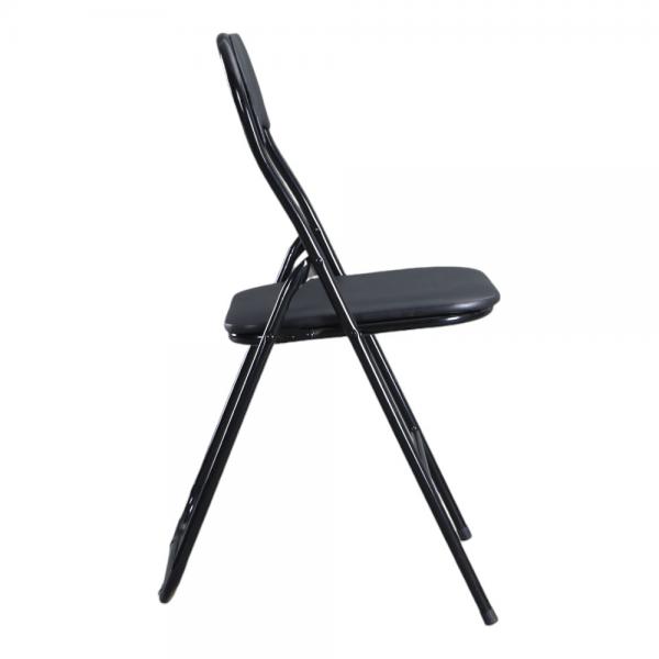 Καρέκλα πτυσσόμενη μεταλλική με ηλεκτροστατική βαφή σε μαύρο χρώμα ιδανική για κάθε χώρο. Το κάθισμα και η πλάτη είναι από μαύρο PVC με υφή δερματίνης, προσφέροντας άνεση και κομψότητα. Εξοικονομεί χώρο και αποθηκεύεται εύκολα.