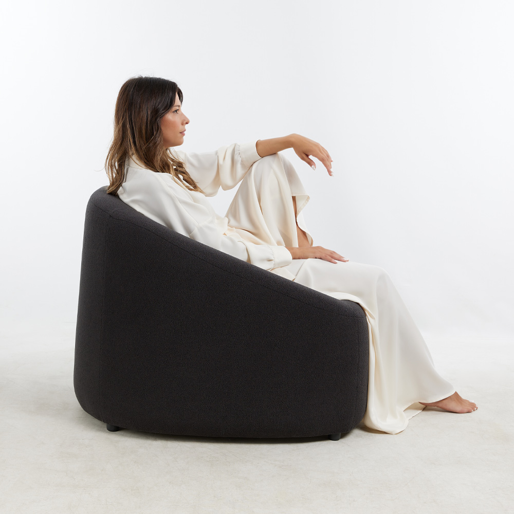 Φέρτε χαρά και ζωντάνια στον χώρο σας με την μοντέρνα πολυθρόνα Puffy. Σχεδιασμένη για να προσφέρει μέγιστη άνεση και στυλ, αυτή η πολυθρόνα είναι η ιδανική επιλογή για όσους θέλουν να προσθέσουν μια φωτεινή και χαρούμενη νότα στο σπίτι τους. Είναι επενδυμένη με υψηλής ποιότητας ύφασμα μπουκλέ, σε σκούρο γκρι απόχρωση, το οποίο προσφέρει μια απαλή αίσθηση σε συνδυασμό με μια διακριτική και εκλεπτυσμένη νότα. Με τις μαλακές καμπύλες και τον φιλικό της σχεδιασμό αποπνέει έναν αέρα ανεμελιάς και χαλάρωσης.