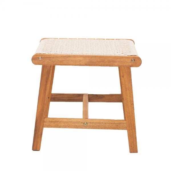 Το σκαμπό Mesh συνδυάζει διαχρονικό στυλ και λειτουργικότητα, αποτελώντας μια κομψή προσθήκη σε κάθε χώρο. Κατασκευασμένο από ξύλο ακακίας σε φυσική απόχρωση, προσφέρει αντοχή και σταθερότητα, ενώ η επιφάνειά του είναι πλεγμένη από πολυαιθυλένιο υψηλής πυκνότητας σε λευκό χρώμα, δημιουργώντας μια κομψή και ελαφριά αισθητική. Ιδανικό για χρήση ως υποπόδιο ή βοηθητικό κάθισμα, το σκαμπό Mesh ταιριάζει αρμονικά τόσο σε εσωτερικούς όσο και σε εξωτερικούς χώρους. Ο φυσικός συνδυασμός υλικών και η minimal αισθητική του το καθιστούν την τέλεια επιλογή για όσους αναζητούν κομψότητα και πρακτικότητα.