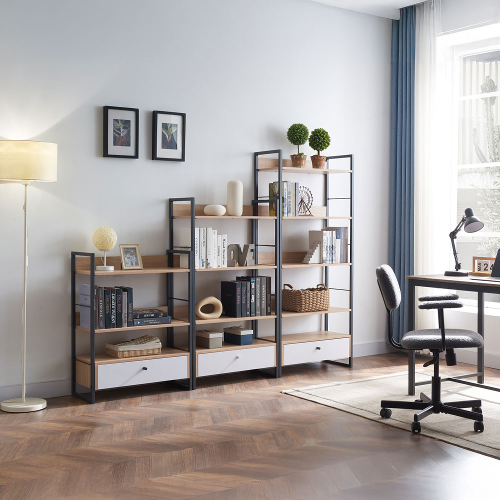 Η βιβλιοθήκη Trilogy συνδυάζει τη σύγχρονη αισθητική με τη λειτουργικότητα, δημιουργώντας έναν κομψό αποθηκευτικό χώρο για το σπίτι ή το γραφείο. Κατασκευασμένη από μελαμίνη και ανθεκτικό μεταλλικό σκελετό ηλεκτροστατικής βαφής, προσφέρει σταθερότητα και μακροχρόνια αντοχή. Τα ανοιχτά ράφια προσφέρουν άπλετο χώρο για την τοποθέτηση βιβλίων, διακοσμητικών ή άλλων αντικειμένων, ενώ το κάτω συρτάρι παρέχει επιπλέον αποθηκευτικό χώρο για αντικείμενα που θέλετε να διατηρήσετε κρυμμένα. Με τον industrial σχεδιασμό της και την ευέλικτη αισθητική, η Trilogy ταιριάζει απόλυτα σε σύγχρονους και μίνιμαλ χώρους προσδίδοντας μία μοντέρνα και πρακτική πινελιά.