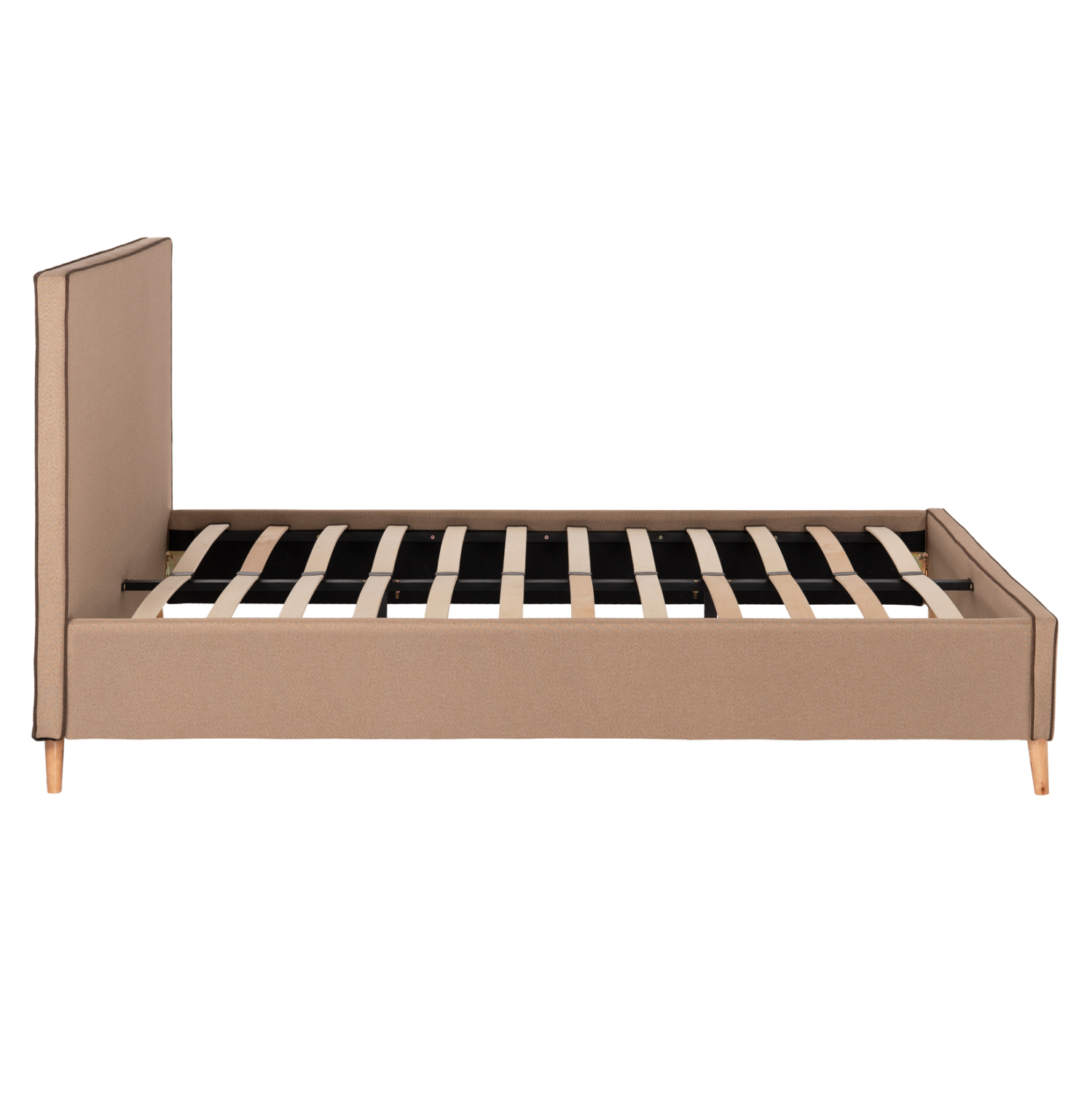 Με το κρεβάτι FB9662.02 μπορείτε να απολαμβάνετε κάθε στιγμή τον ύπνο σας. Έχει ψηλό κεφαλάρι με υφασμάτινη επένδυση σε ΜΠΕΖ χρώμα και ρέλι που διατρέχει όλες τις γωνίες σε ΚΑΦΕ χρώμα. Το διπλό στρώμα «κάθεται» πάνω σε ανατομικές τάβλες, ακολουθώντας τον παραδοσιακό τρόπο κατασκευής κρεβατιού. Μια μοντέρνα και λιτή πρόταση που θα ανανεώσει το υπνοδωμάτιό σας.