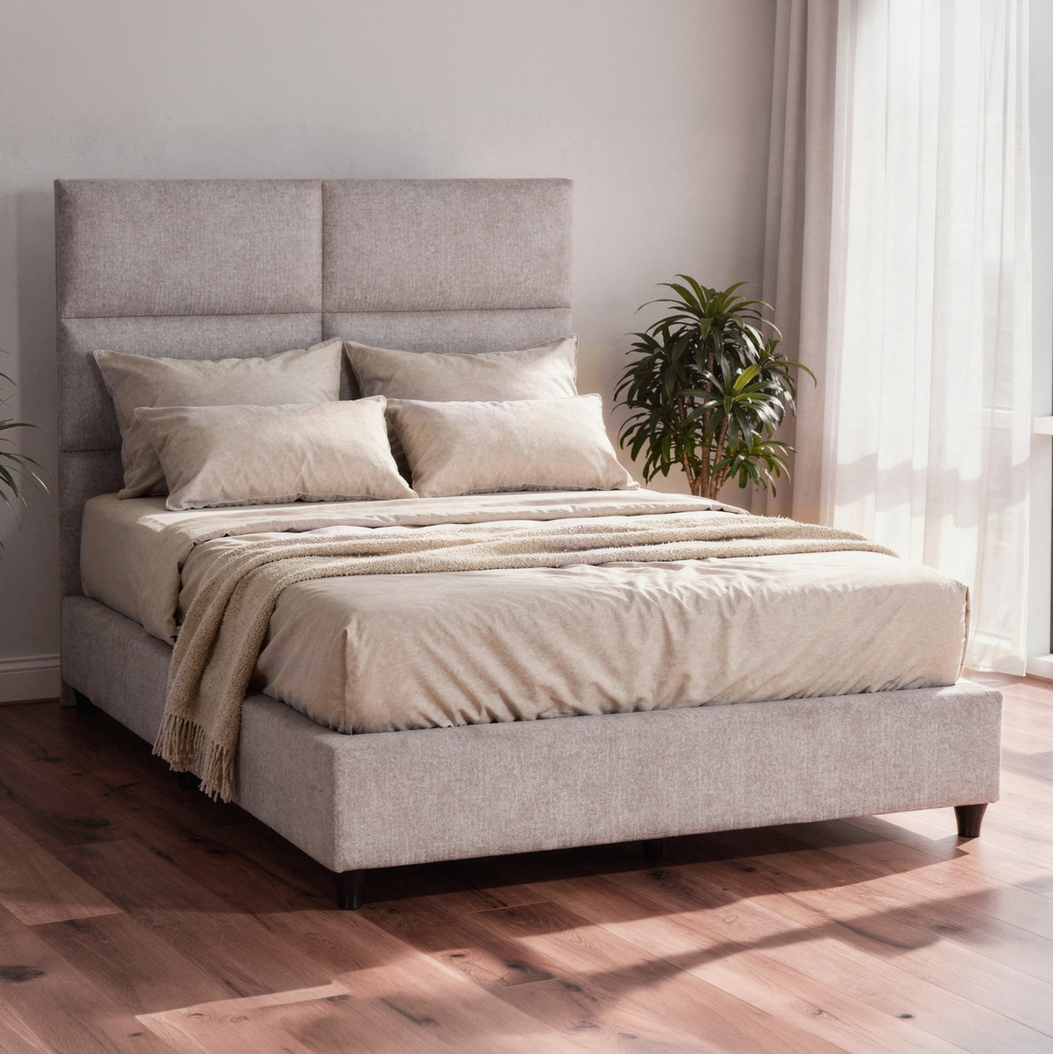 Το κρεβάτι FB9646.32 έχει ψηλό κεφαλάρι, επενδυμένο με καπιτονέ τεχνοτροπία σε μεγάλα ορθογώνια, ενώ όλη η επένδυση του κρεβατιού είναι από ποιοτικό ύφασμα. Το ΜΠΕΖ χρώμα σε όλο το κρεβάτι είναι ουδέτερο και μπορεί να συνδυαστεί με πληθώρα διακοσμητικών μοτίβων. Όμως, το κύριο χαρακτηριστικό αυτού του κρεβατιού είναι ότι δεν ακολουθεί την κλασική κατασκευή με τις τάβλες του σομιέ για την στήριξη του στρώματος, αλλά αντίθετα αποτελείται από μια συνεχόμενη επιφάνεια πάνω στην οποία τοποθετείται το στρώμα! Σε διάσταση ημίδιπλου στρώματος 120×200 εκ.