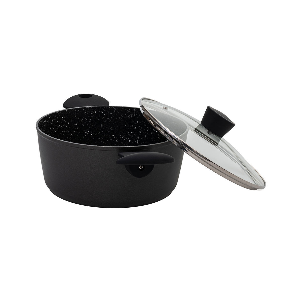 Ανακαλύψτε τις κατσαρόλες Magma Series ιδανικές για κάθε κουζίνα και νοικοκυριό. Κατασκευασμένες από πρεσσαριστό αλουμίνιο πάχους 3.0 mm για άψογη απόδοση σε κάθε χρήση. Προσφέρουν ομοιόμορφη κατανομή της θερμοκρασίας για τέλειο ψήσιμο και γρήγορο μαγείρεμα. Η τριπλή μαρμάρινη αντικολλητική επίστρωση που διαθέτουν προσφέρει εντυπωσιακές αντικολλητικές ιδιότητες και ενισχυμένη ανθεκτικότητα στα γδαρσίματα. Με γυάλινο πυράντοχο καπάκι που περιβάλλεται από ανοξείδωτο στεφάνι και εργονομικές αντιολισθητικές λαβές από βακελίτη που παραμένουν κρύες κατά το μαγείρεμα για άνετο κράτημα.