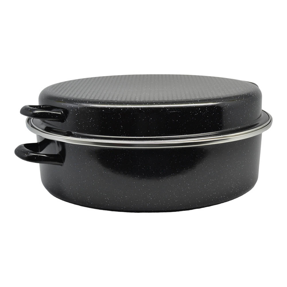 Γάστρα φούρνου βαρέως τύπου,με εμαγιέ αντικολλητική επίστρωση,καπάκι κ σχάρα,άριστης ποιότητας,ιδανική για χρήση σε υψηλές θερμοκρασίες.Διανέμει ομοιόμορφα την θερμότητα κατά το ψήσιμο κ έχει εξαιρετική ανθεκτικότητα.Ασφαλής η χρήση σε πλυντήριο πιάτων.