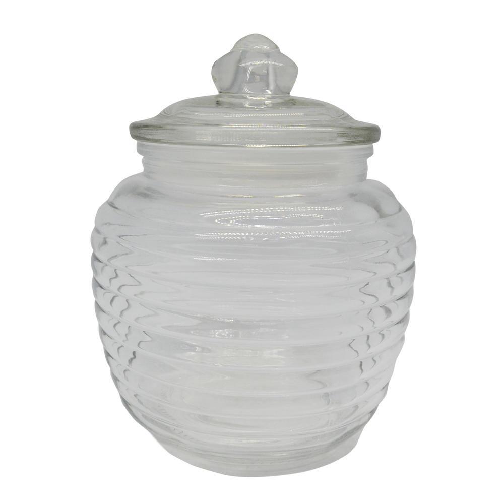 Βάζο γυάλινο χωρητικότητας 1,4 λίτρων με γυάλινο καπάκι και διακριτική διακόσμηση ανάγλυφες οριζόντιες ρίγες
